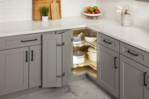 Hardware Resources has introduced a new organization solution that improves on the traditional Lazy Susan. The new CornerMax Lazy Susan maximizes storage space in corner cabinets with unobstructed rotating shelves, perfect for storing oversize cookware and small appliances.